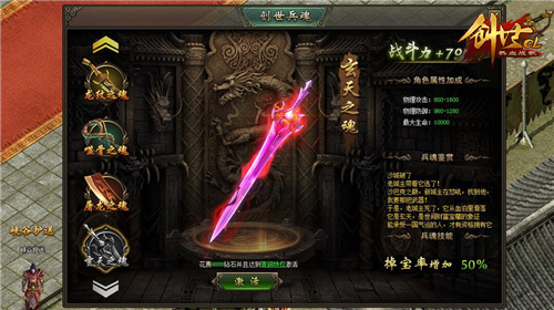 唤醒创世兵魂 获取加成技能 创世兵魂是《热血战歌》里一项重要的玩法,可能很多人不太了解兵魂是什么,它类似于武器一般的存在,是每个角色在成长过程中必会获得的无形利器。系统开启后登陆首日即可获得首个兵魂“裁决之魂”,除了裁决之魂,还有骨玉之魂、龙纹之魂、噬骨之魂、屠龙之魂、玄天之魂在内的5大兵魂等待玩家来激活,激活后角色的攻击、防御和最大生命值会大幅增加,同时每种兵魂都会有特殊的兵魂技能,每激活一种兵魂就会累加一种兵魂技能,让你体验不断变强的快感! 达成特定条件 激活玄天之魂 每个兵魂的激活条件都不一样,前期玩家获取裁决之魂、骨玉之魂、龙纹之魂、噬骨之魂非常容易,只要每天上线领取一种,登陆5天就能全部拥有,但屠龙之魂和玄天之魂的获取方式就有限制了,需要消耗一定数量的钻石同时达到青铜特权才能激活。激活屠龙之魂,角色暴击率10%;激活玄天之魂,掉宝率直接增加50%,是不是相当逆天呢? 如果你想成为真正的幸运儿的话,就向着玄天之魂进发吧~《热血战歌》创世兵魂劲爆出击,突破战力桎梏,让你在任何战斗中都能立于不败之地!不信的话,就来游戏里试试看吧!